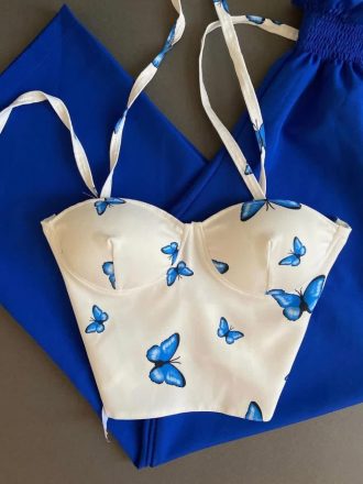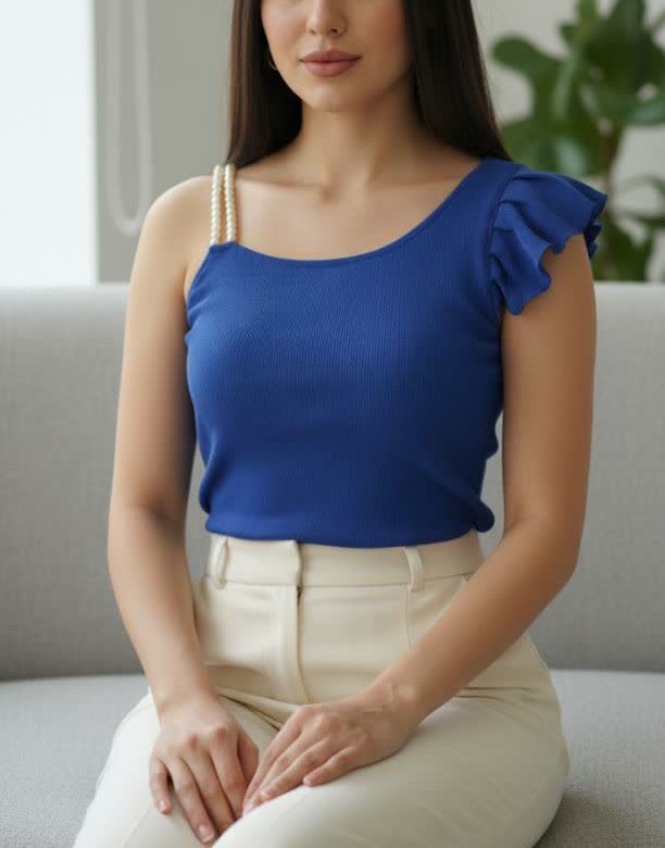 کراپ یقه چین بند مرواریدی